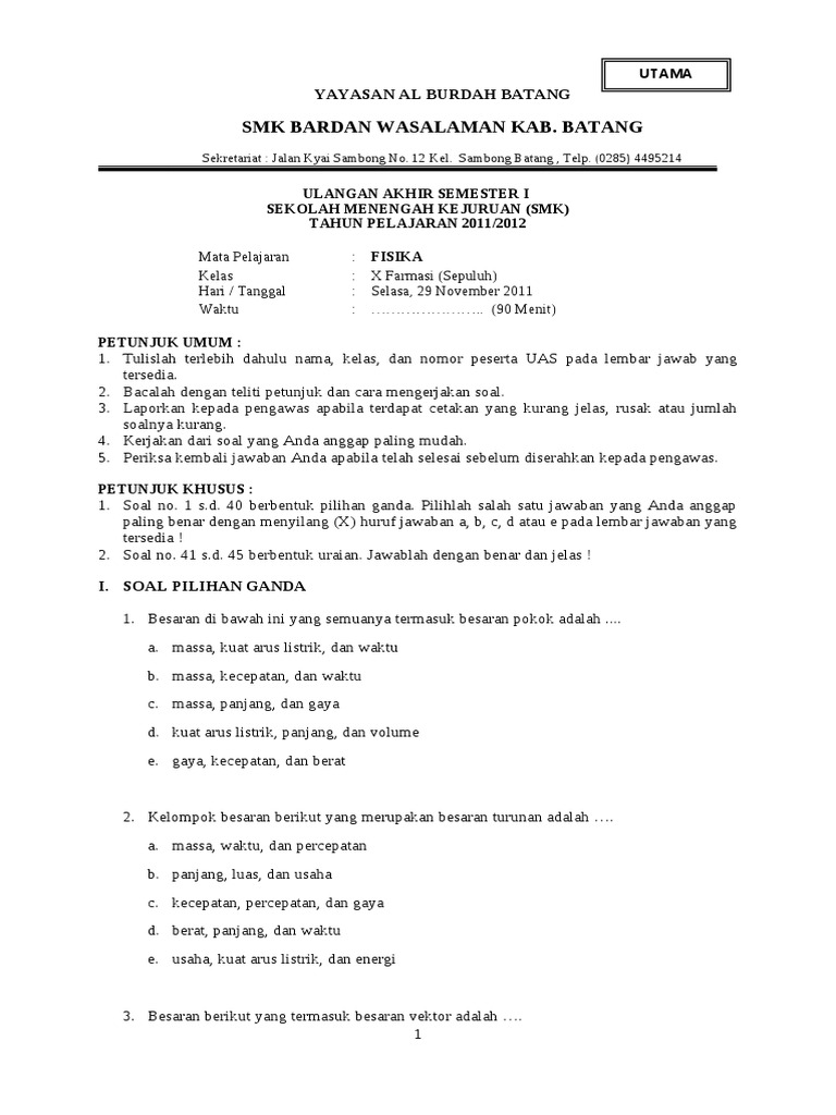 If you are looking for Soal Uas Fisika Smk Kelas X-1 you've visit to the right place. We have 35 Images about Soal Uas Fisika Smk Kelas X-1 like Soal Fisika Kelas XI Semester 1 | PDF, Download Soal Uas Fisika Kelas Xi Semester 2 - Berkas Sekolah and also Macam Macam 100 Soal Fisika Kelas X. Here it is: