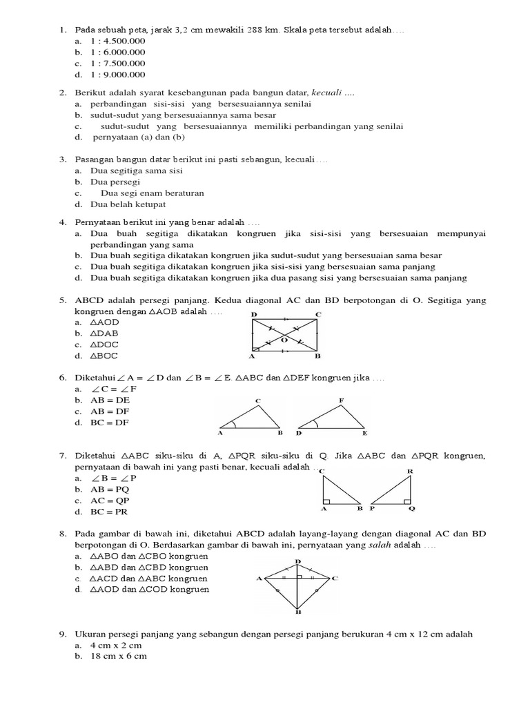 latihan kesebangunan matematika kekongruenan fisika smp ipa listrik